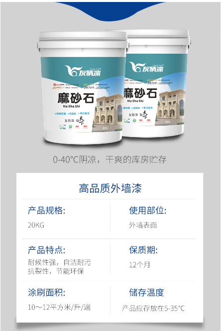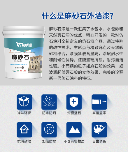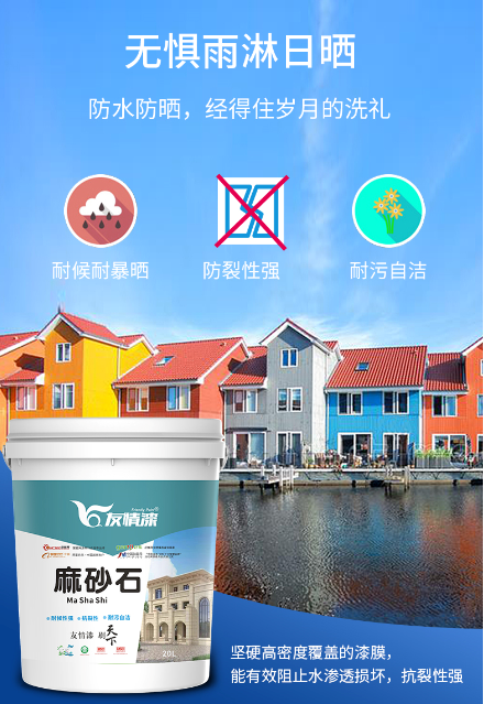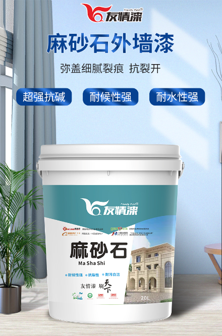 為適應(yīng)外墻漆裝飾市場(chǎng),高效節(jié)省美觀的需求,友情漆公司推出極具性價(jià)比的新款外墻仿石漆——麻砂石: