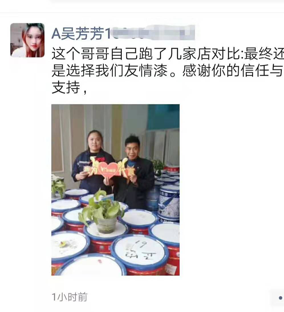 現(xiàn)在做老板不要跟大爺一樣了,服務(wù)上除了要做好,更要做到與眾不同,搞點(diǎn)創(chuàng)新脫穎而出。貴州一個(gè)友情漆的油漆代理老板,只要自己有時(shí)間,都會(huì)親自送一次漆到工地,到了工地就會(huì)給每一個(gè)師傅打招呼遞煙。店鋪用了她的漆裝修,開張當(dāng)日一定送個(gè)特制的大花籃去祝賀。